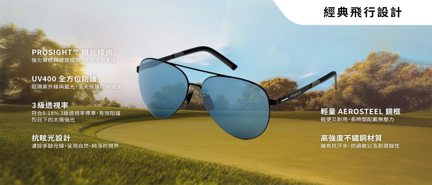 Inspired by classic pilot styling, combined with ProSight ™ lens technology allows for a clearer field of vision and more distinct grass details, allowing you to control every move at any time, whether on the golf course or in outdoor activities. The lightweight AeroSteel frame provides all-day comfort, allowing you to enjoy every moment of your activity, no matter what the environment throws at you.